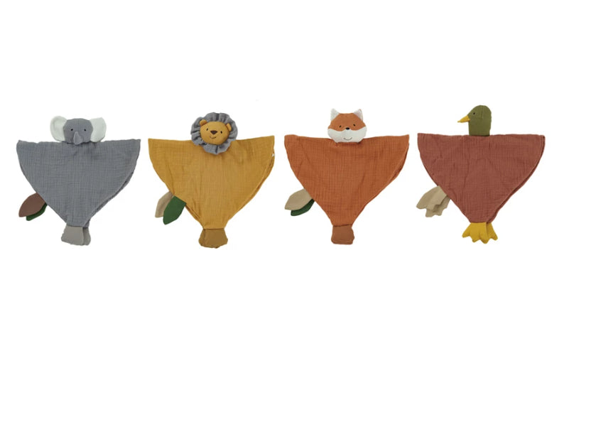 This adorable 20"L x 12"W Cotton Double Cloth Animal Snuggle Toy is perfect for nurseries, offering comfort and companionship for little ones. Available in four charming styles—Duck, Fox, Lion, and Elephant—each toy is made from soft, durable cotton fabric for a cozy feel. The multi-color design adds a playful touch, making it an ideal gift or decor piece for any child's room.